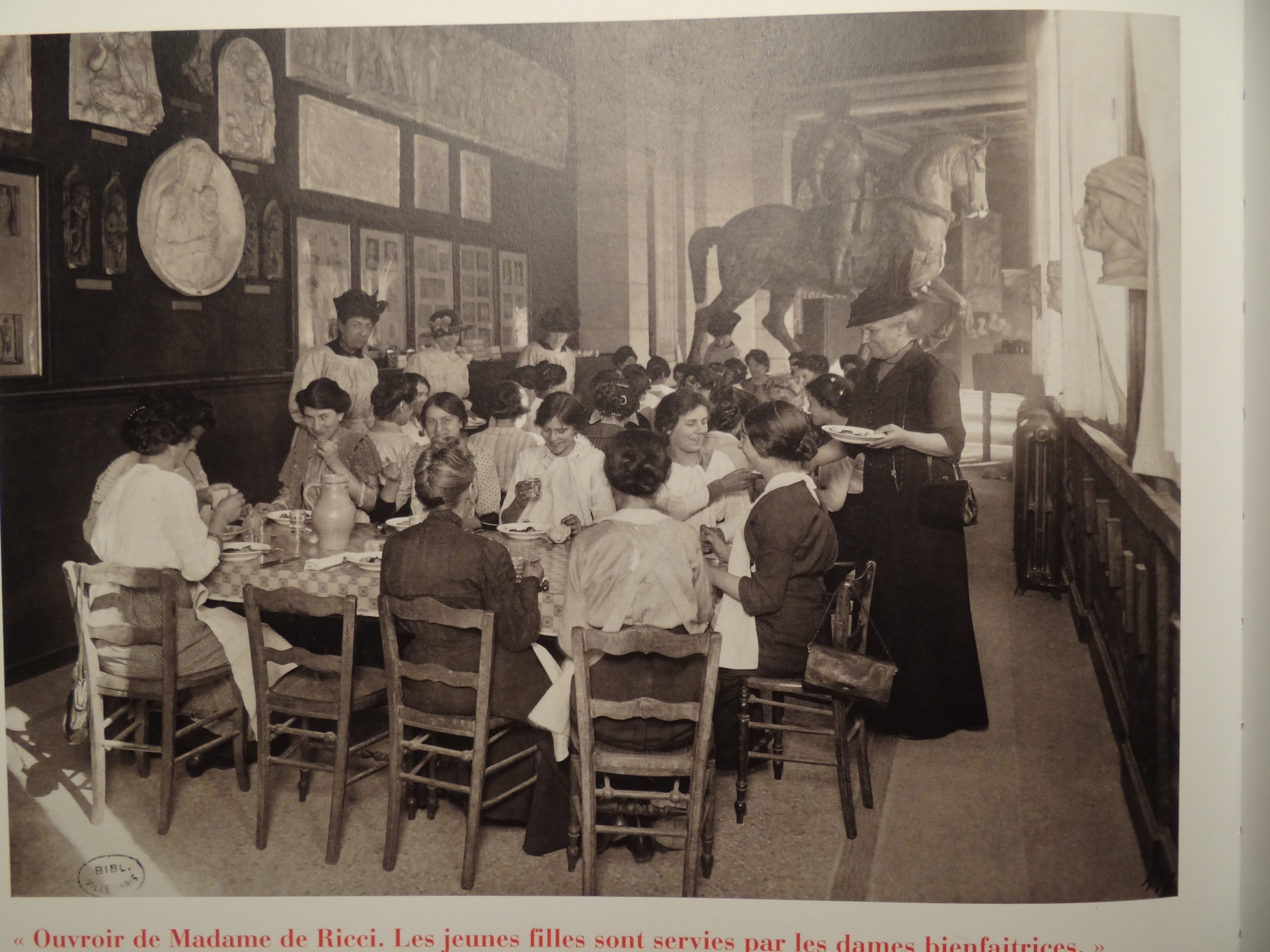 L’ouvroir de Madame de Ricci. Les jeunes filles sont servies par les dames bienfaitrices.